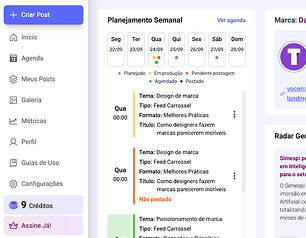 Um app único para ideias de post, copy, arte, monitoramento, agendamento e organização do trabalho. Tudo acelerado por IA.