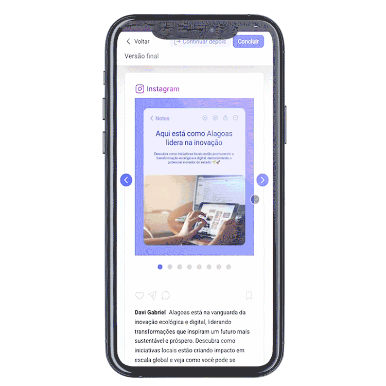 ✅ Reduz em 80% o esforço e o tempo de produção de conteúdo para o Insta